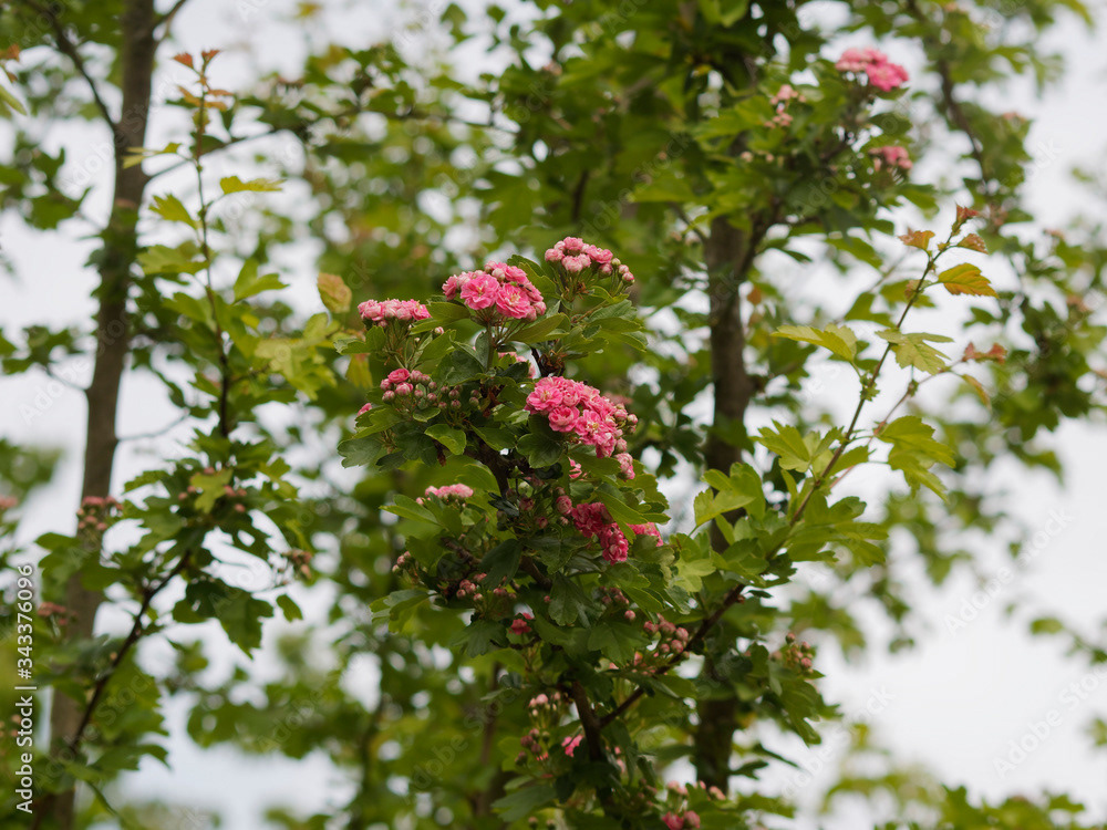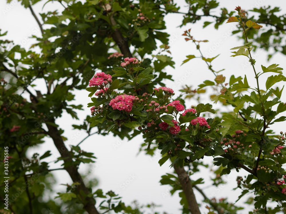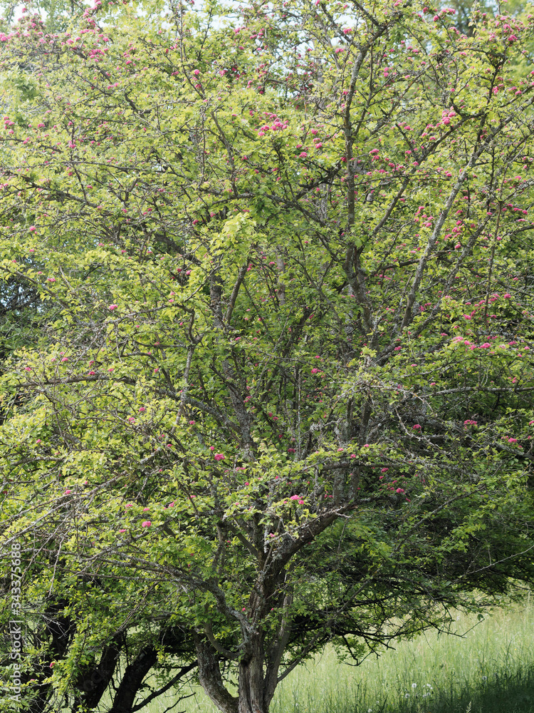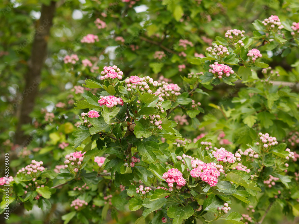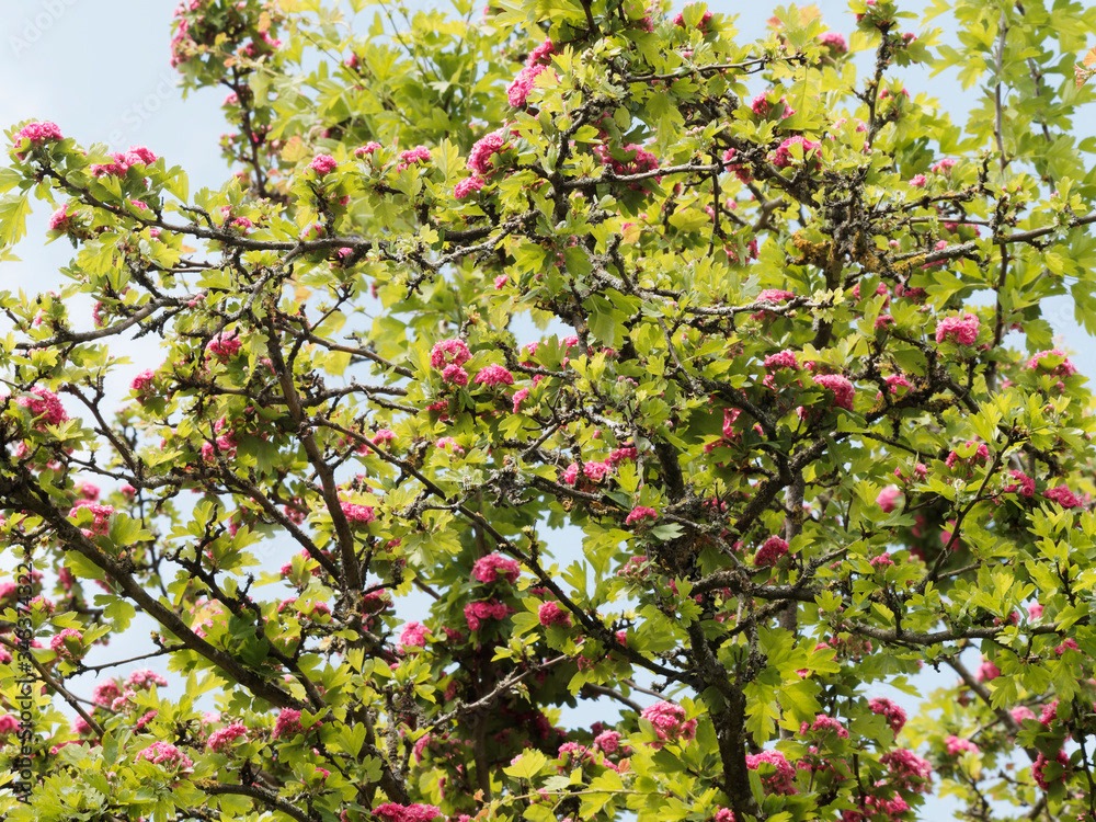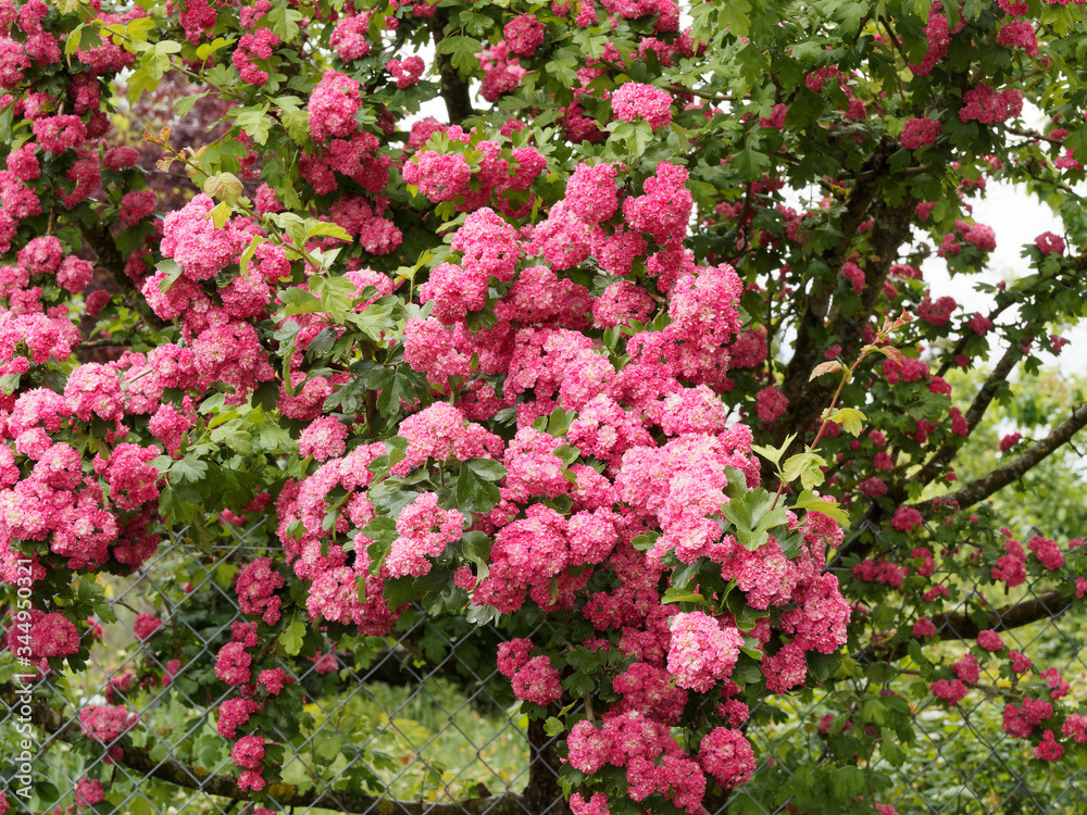 Aubépine à fleurs roses
