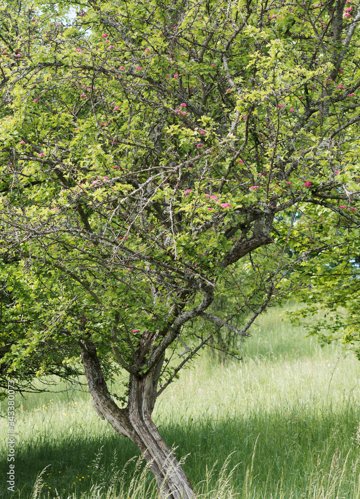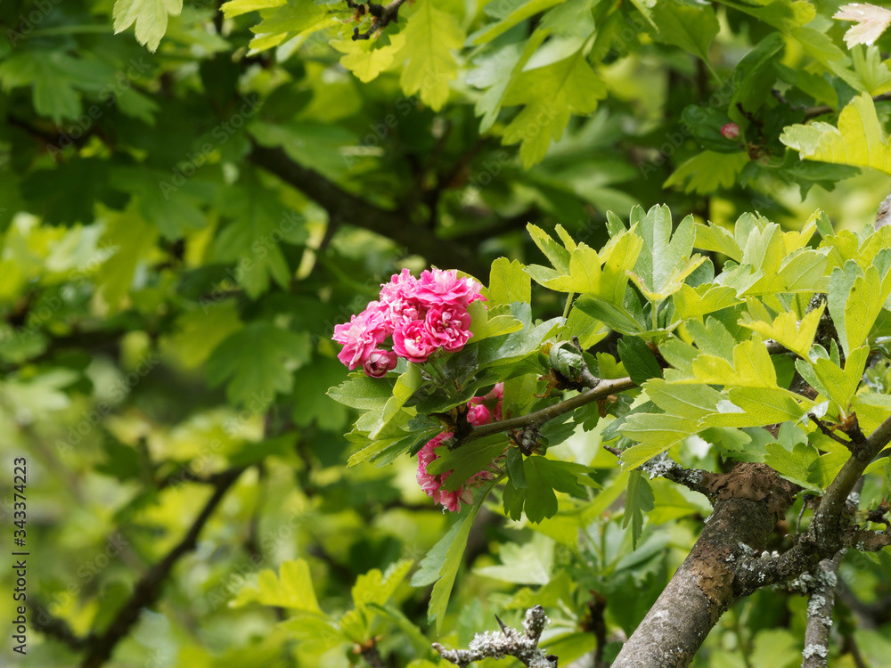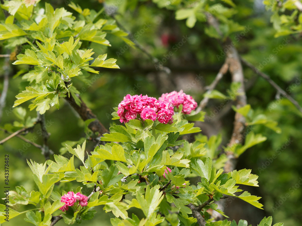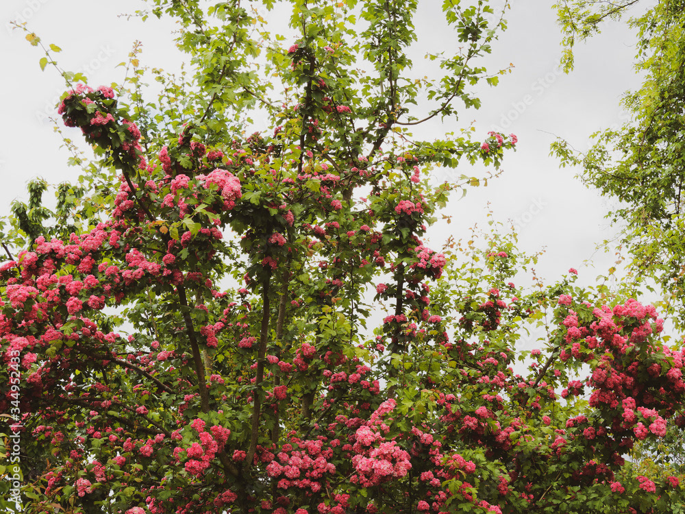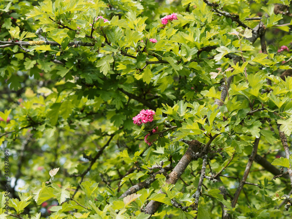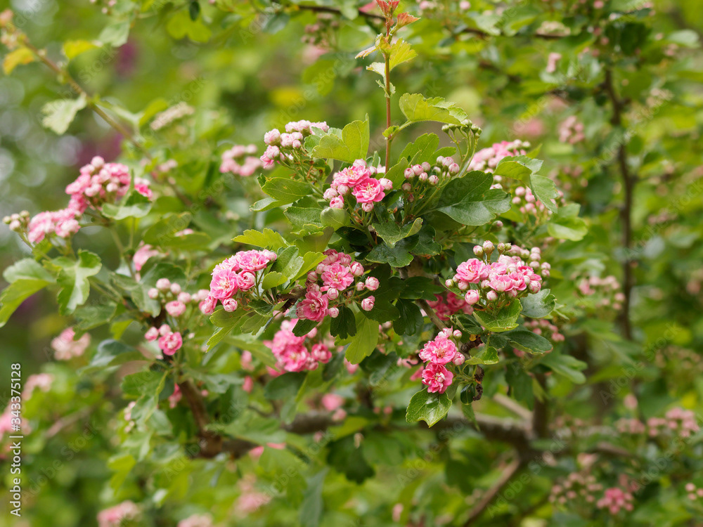 Aubépine à fleurs roses